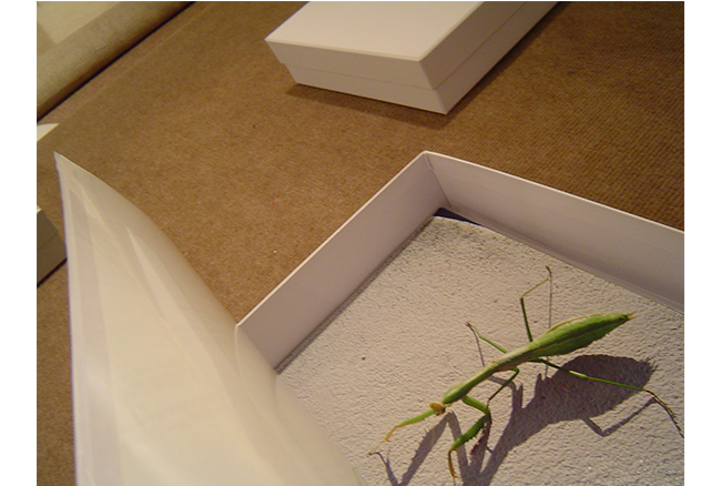 En el momento de dar vuelta la hoja, el espectador participará del movimiento de notación de las imágenes y de las palabras como una suerte de animación surgida del - en el acto de la movilidad. Cada apertura y visita a la caja resultará en un tiempo presente, real y propio para el participante en el sentido de la experiencia kinestésica. Al espectador – participante la caja lo hará entonces - enterarse de - trabajar en el - cuerpo de la cohesión por los signos, por ser participado de su manipulación. Por notarse.